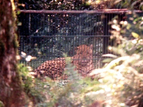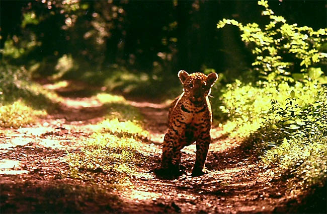 Um macho subadulto de onça-pintada aparelhado com rádio-colar, na estrada do Poço Preto, no Parque Nacional do Iguaçu, em abril de 1991.