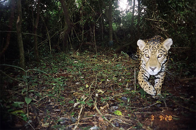 Onça pintada fotografada com armadilha fotográfica, na nova fase do projeto, em 2009.