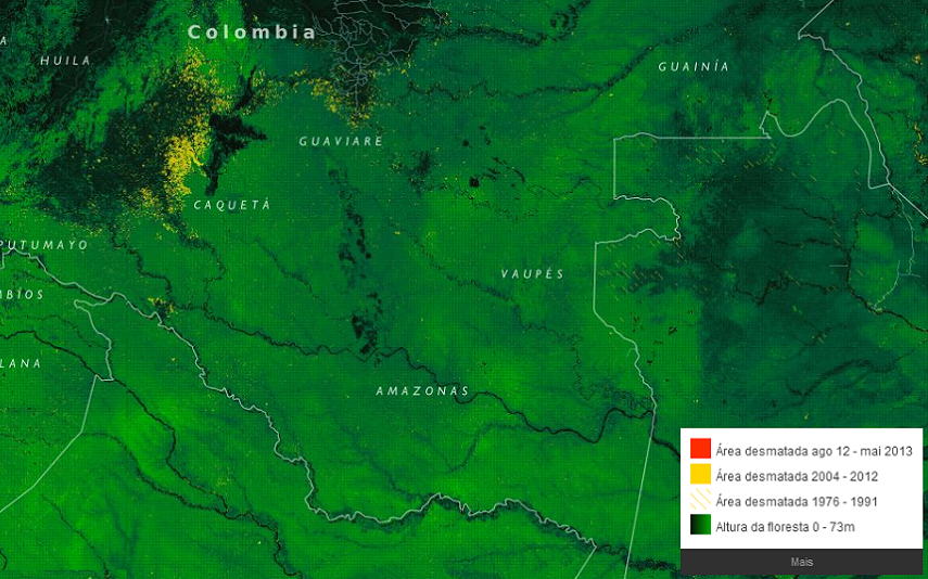 O crescimento do desmatamento na Amazônia preocupa ambientalistas colombianos. Nos últimos dois anos, foram devastados 162.462 hectares no país (ou 1.642,62 km², mais do que a área do município de São Paulo, que é de 1.523 km²). O ritmo de derrubada da floresta aumentou. Enquanto em 2011 foram desmatados 72.531 hectares, em 2012 o número foi de 89.931 hectares, um aumento de 24%. Os dados são parte de um levantamento feito com base em dados do satélite Terra-I em parceria com a plataforma Infoamazonia, divulgado pelo jornal El Espectador em agosto.