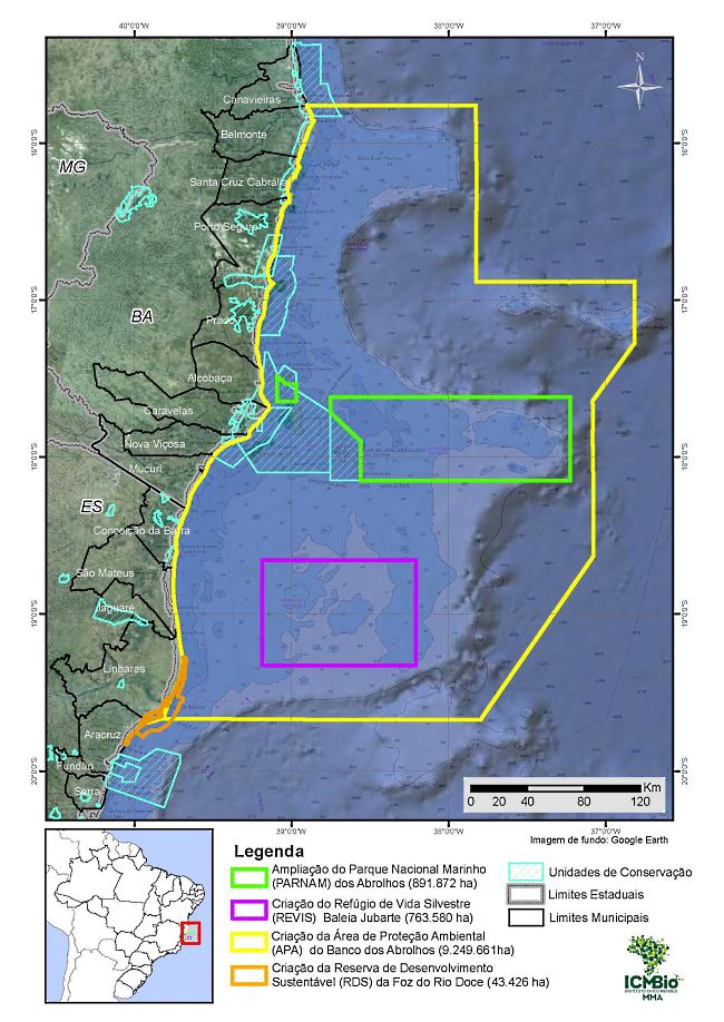 “A Área de Proteção Ambiental é uma tentativa de dar uma proteção maior a esta área e colocá-la dentro de uma proteção legal. Como a Zona de Amortecimento não foi restabelecida, foi proposta uma APA”, explica Lourenço, A proposta prevê que a APA seja dividida em três setores, para facilitar a gestão, duas na Bahia e uma no Espírito Santo.