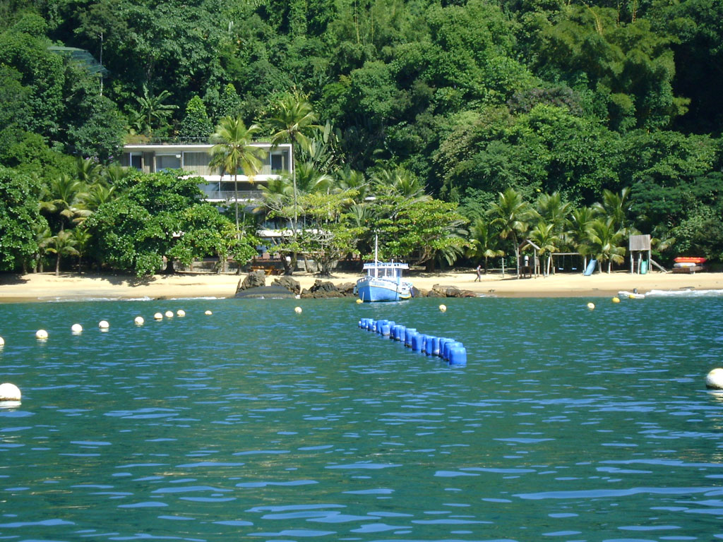 Já perto da Praia Vermelha, está localizada uma luxuosa casa dos herdeiros do Roberto Marinho. Na praia, um segurança armado protege a propriedade e se aproxima com olhar ameaçador, quando o barco do ICMBio passa perto. Construída fora dos parâmetros do plano de manejo, a mansão foi questionada na Justiça. O processo já dura anos. Segurança impedindo ou intimidando banhista é apenas um dos exemplos de privatização de praia, que são bens da união.