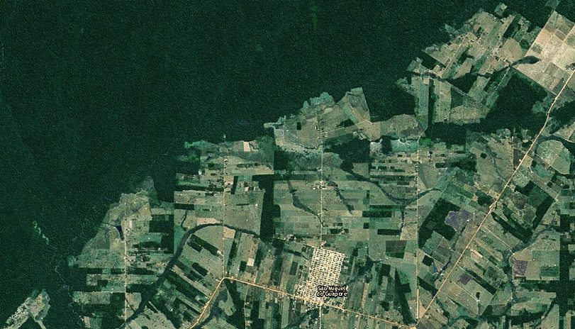 A animação a seguir permite acompanhar a evolução do desmatamento e ver como a abertura de estradas abriu caminhos para que a vegetação fosse posta abaixo. Os anos passam e as imagens mostram o avanço do estrago. Do lado esquerdo, porém, aparece a grande área verde do Parque Nacional de Pacaás Novos.