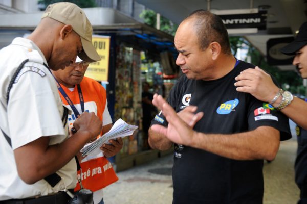 Medida da Prefeitura do Rio começou a valer hoje. Cerca de 100 pessoas foram multadas no Centro. Multas variam de 157 a 3 mil reais. →