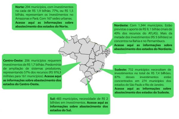 Segundo Atlas da Agência Nacional de Águas será preciso R$ 22 bilhões de investimentos em sistemas de captação e distribuição de água até 2015. →