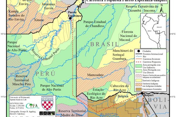 Essa estrada exporia habitantes e índios isolados da região à degradação ambiental e ao tráfico de drogas. Melhor fazer a estrada no Acre. →