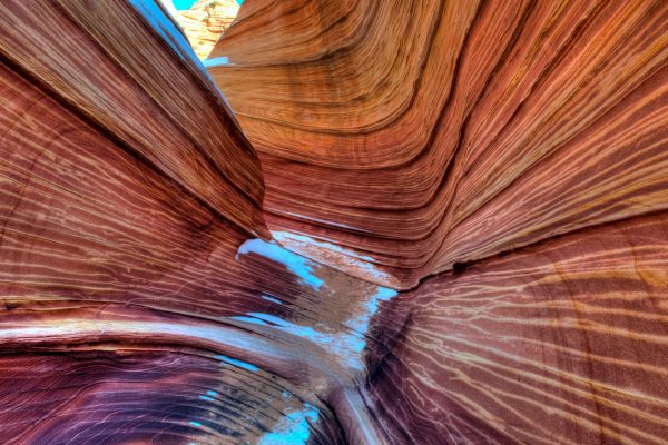 A colorida e ondulante formação de arenito atrai turistas e trilheiros a se aventurar nos cânions do Arizona, Estados Unidos. Foto: James Gordon →