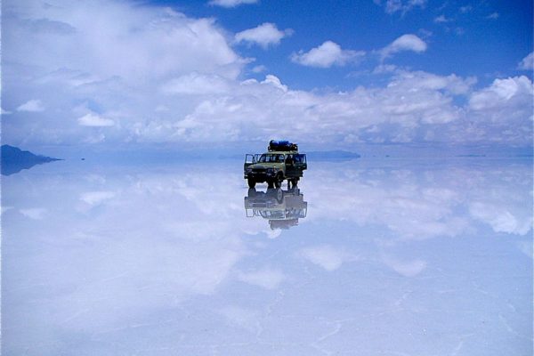 O Salar de Uyuni, na Bolívia, é o maior deserto de sal do mundo. Em novembro, o plano de sal se transforma em um imenso espelho. Foto: Patrick Nouhailler →