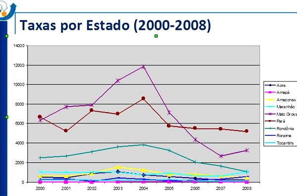 Assim como no período 2006-2007, o Pará foi o campeão de desmatamento, com 5.180 quilômetros quadrados de florestas derrubadas, mais que 43% do total. Mato Grosso vem em seguida, com 3.259 km² de devastação (27,2%). Em terceiro lugar está o Maranhão, com 1.085 km² de desmate no período (9%). Rondônia, que ao longo do ano esteve entre os estados que mais desmataram nas medições mensais do Sistema de Detecção em Tempo Real (Deter), aparece em quarto lugar no ranking do Inpe, com 1.061 km² de floresta derrubada. A lista segue com Roraima (570 km²), Amazonas (479 km²), Acre (222 km²), Tocantins (112 km²) e Amapá, que não registrou desmatamentos no período, segundo relatório do Inpe.