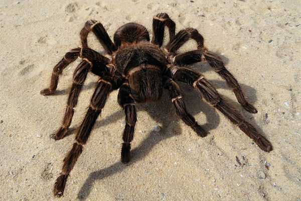 A homenageada do ((o))eco esta semana é a caranguejeira-rosa-salmão-brasileira, a segunda maior tarântula do mundo. Foto: George Chernilevsky →