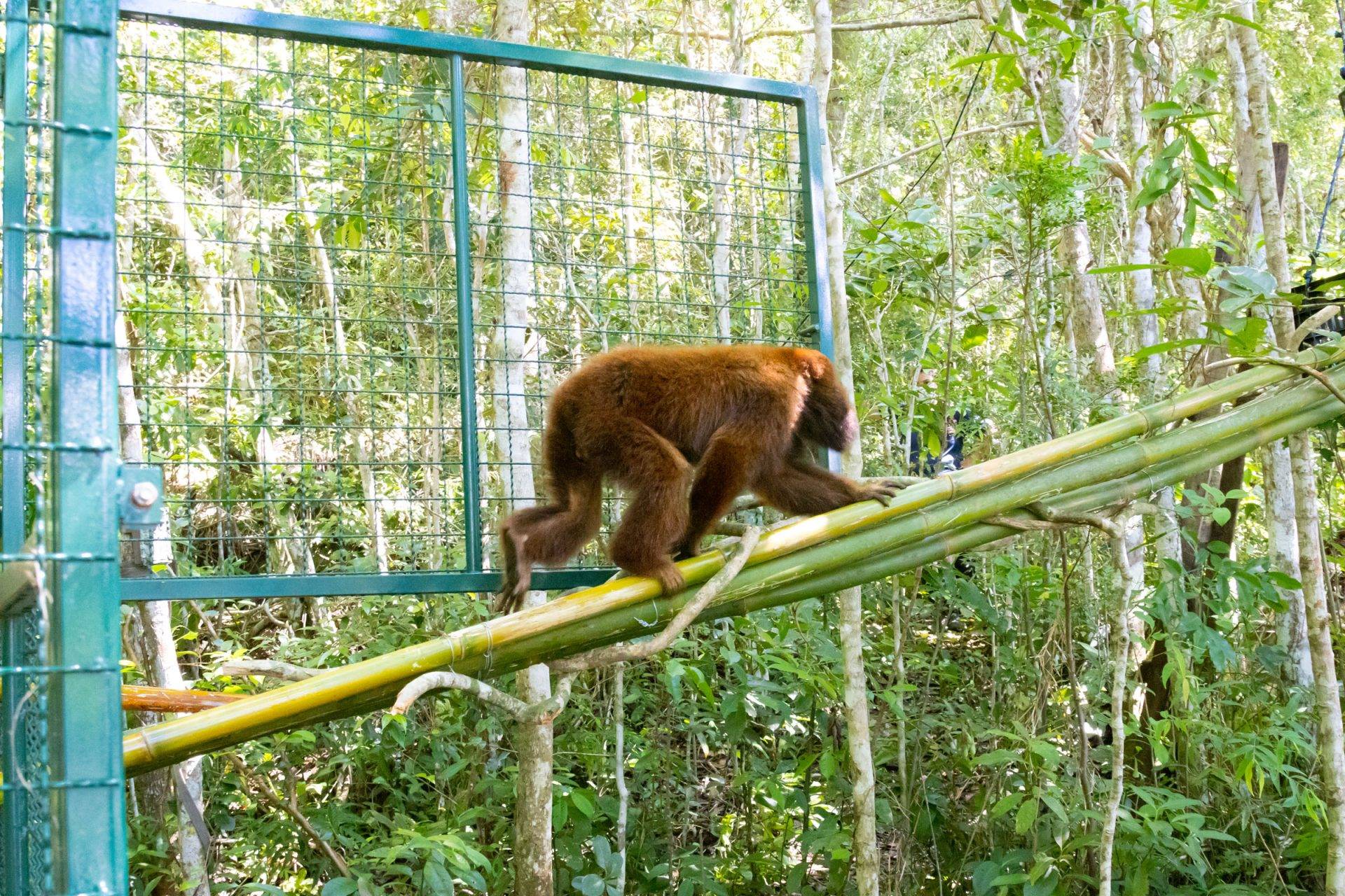 Após nove meses em um recinto de aclimatação na floresta, os macacos puderam enfim retornar à vida na floresta onde já vivem outros oito bugios-ruivos →