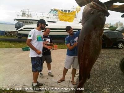 A gente já sabe que tem pesca de mero, ainda que seja proibido capturar, temos a plena ciência de que o mero ainda é pescado, pois volta e meia recebemos denúncias e encaminhamos ao órgão competente. Nós não fazemos parte da gestão de fiscalização. Então, temos contato com o Ibama, com pessoas que já abraçaram a causa. Esse contato funciona muito bem. Meses atrás recebemos uma denúncia, encaminhamos para o Ibama e eles foram atrás do cara e acharam o mero no freezer. Esse caso foi lá em Santa Catarina. Recebemos um vídeo com uma denúncia de um pessoal embarcando um mero, e na gravação apareceu a placa do carro.