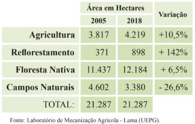 A agricultura local avançou 10,5%, totalizando 402 hectares a mais de plantio, principalmente, de soja e milho transgênicos. Cresceu também a área de reflorestamento de Pinus: 527 hectares, o que representa um aumento de 142% no mesmo período. Os avanços somam 947 hectares e representam crime ambiental, já que, pela lei, o Parque Nacional deveria ter sido mantido como estava, desde a criação. É possível perceber no mapeamento que a floresta avançou sobre a área de Campo, uma tendência natural. A ação humana, entretanto, acelera o processo.
