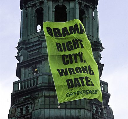 No dia em que o Rio levou a vaga para sediar as Olimpíadas de 2016, o Greenpeace mandou um recado para que os presidentes compareçam a Copenhague em Dezembro para negociarem acordo do clima. →