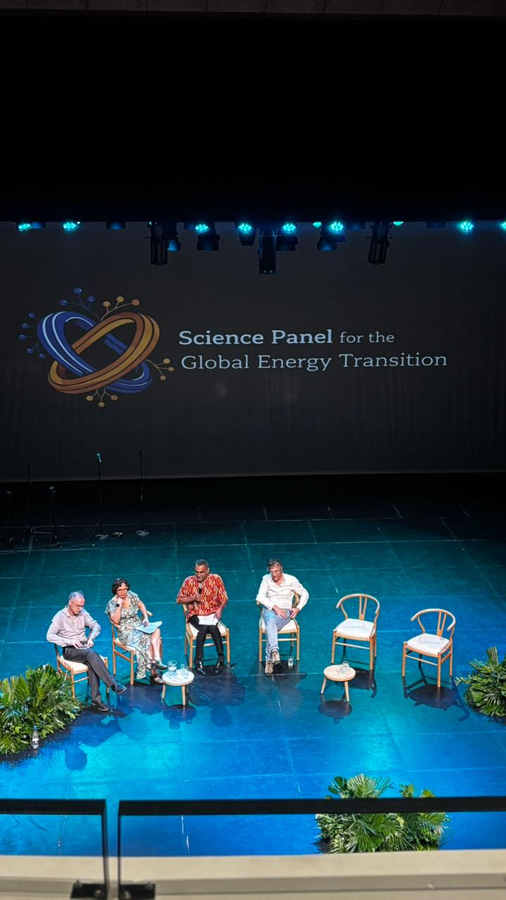 Em seguida, uma a uma, as cadeiras vazias que flutuavam sob um foco de luz teatral foram ocupadas pelas estrelas da noite: cientistas. Entre eles Johan Rockström, que liderou a pesquisa que definhou os Limites Planetários, que dedicou o Painel à serviço de todos aqueles que têm compromisso com a transição energética, fazendo da ciência uma ponte para acelerar a transição e garantir que a ela nunca mais desapareça das COPs.