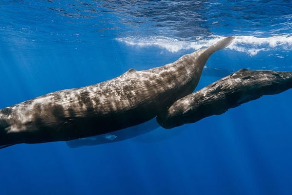 A cachalote, maior dos cetáceos, serviu de inspiração para Moby Dick. Se no livro, o animal sobrevive; na realidade, a espécie corre risco. →