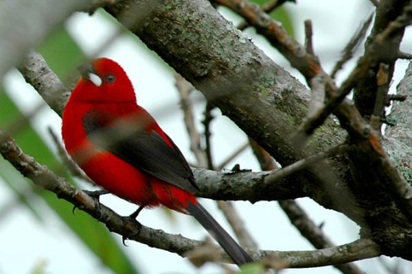 Este tiê-sangue posou na árvore em frente à varanda de um chalé na Ilha do Papagaio Foto: Sérgio Abranches →