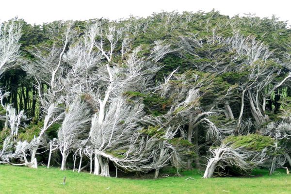 ... nunca se endireita. Assim são as árvores de Slope Point, Nova Zelândia, eternamente varridas pelo vento. Foto: Dan →