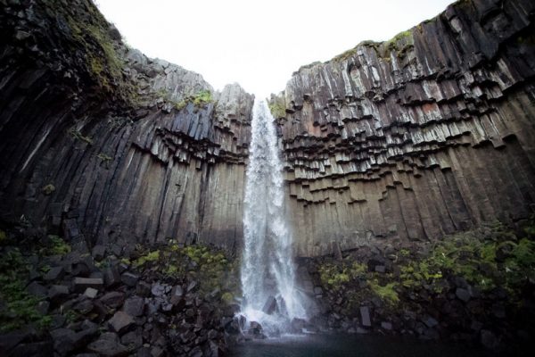 As colunas de pedra negra que formam a cachoeira Svartifoss é um dos pontos turísticos mais populares do Parque Nacional Vatnajökull, na Islândia. Foto: Garrett Miller →