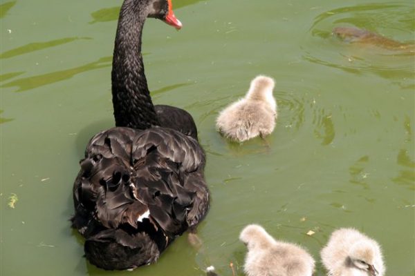 Família dessas belas aves aquáticas desliza pelas águas no Parque del Buen Retiro, em Madrid, vigiada de perto por carpas e outros peixes curiosos. →