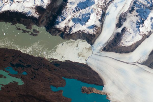 Esta é 3ª maior geleira da América do Sul, com uma extensão de 53,7 km. E graças ao aquecimento global, está retrocedendo. Foto: NASA →