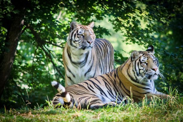 Dois belos tigres siberianos (Panthera tigris altaica) fotografados no zoológico de Sibiu, na Romênia. Foto: Cosmin Popovici →