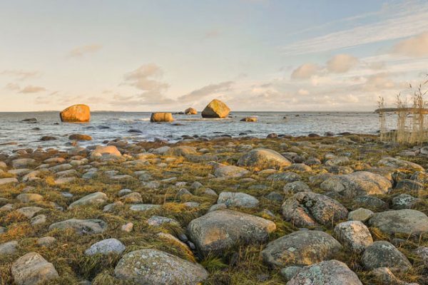 A luz do sol banha o chão pedregoso de uma praia na península de Pärispea, Estônia. Foto: Urmas Haljaste/Wikimedia Commons →
