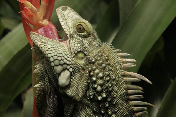 O sorriso da iguana (iguana iguana) fotografada no parque Butterfly World, Stellenbosch, África do Sul. Foto: Leo za1/ Wikimedia Commons →