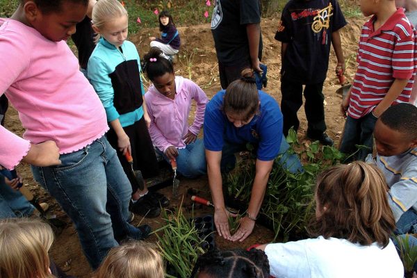 Bióloga mostra aos seus alunos compo plantar em áreas úmidas. Foto: Walton LaVonda, U.S. Fish and Wildlife Service/Public Domain →