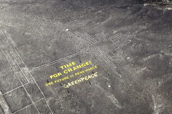 Mensagem de protesto contra mudanças climáticas pode ter danificado Linhas de Nazca, de 2.100 anos. Governo do Peru pretende processar ativistas. →