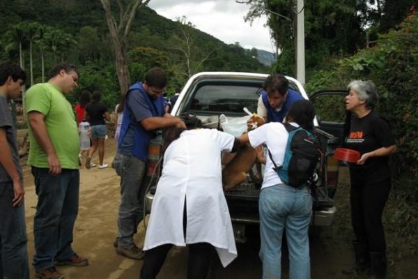 Veterinários fazem trabalho voluntário na região serrana e tratam animais domésticos feridos nas enchetes. Muitos ficaram sem seus donos. →