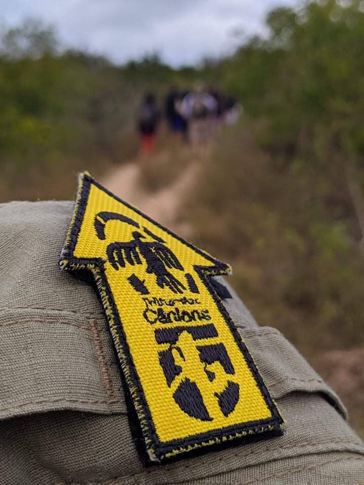 Todo este conjunto de atrativos motivou a criação da uma trilha de longo curso que pudesse se conectar a um caminho maior que acompanha todo o percurso do Velho Chico. Como chefe do Monumento Natural, a ideia nasceu quando percebi a necessidade de sinalizar as trilhas já existentes na região. Solicitei apoio à Coordenação de Uso Público do ICMBio no final de 2017 e, já em em agosto de 2018, promovemos a 1ª Oficina de Implantação e Manutenção de Trilhas do Baixo São Francisco – Módulo Sinalização, ministrada por Pedro da Cunha Menezes. Nesta ocasião foram sinalizados 5 km da recém-criada Trilha dos Cânions e foi projetada sua pegada (e logotipo) que é marcada por uma ave em voo, uma pintura rupestre encontrada na região dos cânions, e um mandacaru, cactácea característica da vegetação da Caatinga.