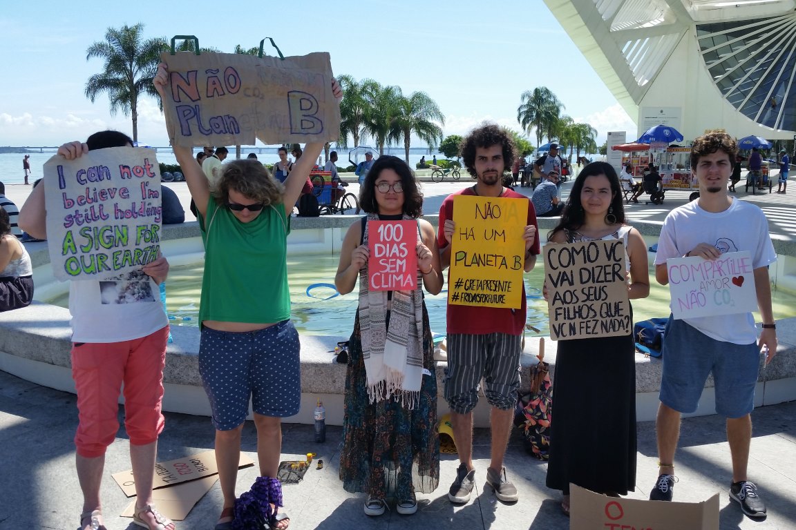 Aqui no Brasil, a greve ocorre quase toda sexta em algumas cidades. No Rio de Janeiro, desde o dia 15 de março, data da primeira greve global pelo clima, os (ainda poucos) jovens foram duas vezes protestar em frente à Assembleia Legislativa (Alerj). Em abril, migraram o local de protestos para o Museu do Amanhã, um espaço dedicado à discussão sobre o impacto do homem no planeta e sobre o futuro em um mundo mais cheio e mais quente. Faz sentido.