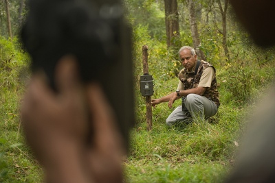 Ullas perto de uma armadilha fotográfica. Foto: WCS.
