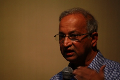 Ullas Karanth, em palestra na Índia em 2015. Foto: Omshivaprakash H L/Flickr.