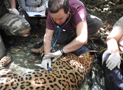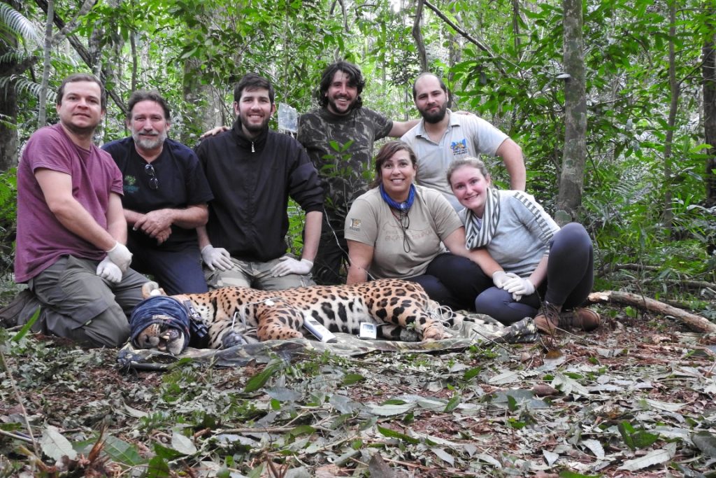 A onça-pintada capturada foi o Croissant, um macho com cerca de 5 anos de idade, lindo de chorar, que nunca havia sido capturado antes. Ele recebeu um colar que nos permite acompanhar sua movimentação, tanto por GPS quanto VHS.