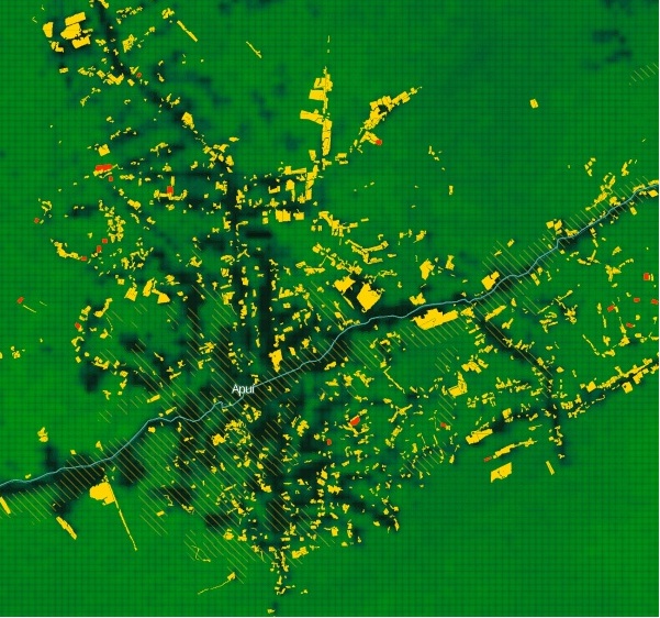 Para efeito de comparação, no mesmo período, o desmatamento foi 30% menor (1.773 hectares) em Apuí, município que concentra boa parte das carvoarias da região e que durante as últimas décadas foi o campeão de desmatamento. Apuí também fica na região sul do estado, na margem da Transamazônica, mas, enquanto em Matupi as derrubadas acontecem em um raio ao redor do centro urbano em formação, em Apuí as novas frentes de extração avançam por ramais por vezes bastante distantes da cidade.