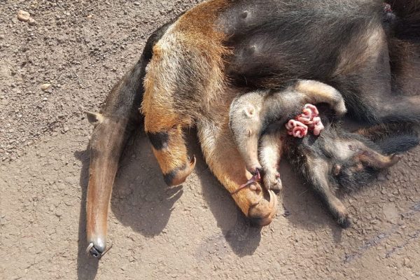 Mãe e filhote de tamanduá-bandeira morrem atropelados em rodovia no MS
