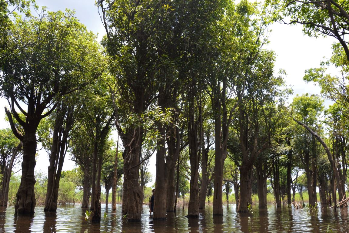 O rio é um organismo vivo e na Amazônia Central isso fica ainda mais visível ao observar os períodos de enchente e vazante, que causam disparidades de cerca de 10 metros entre o auge da cheia e da seca, numa completa transformação da paisagem. Nesse ambiente de estresse hídrico, espécies da flora se desenvolveram e evoluíram junto com esses pulsos de inundação. A espécie que talvez melhor tenha se adaptado a isso é a macacarecuia, uma árvore típica das florestas alagáveis e que se especializou tão bem aos ciclos do rio que em alguns lugares “só dá ela”. Identificada como uma das árvores mais longevas da Amazônia, com indivíduos de mais de 800 anos de idade, a adaptação que tanto favoreceu a macacarecuia saiu pela culatra quando a construção de uma hidrelétrica alterou completamente o ritmo próprio do rio e seus ciclos de cheia e seca. Uma pesquisa recém-publicada aponta que a mudança causou alta mortalidade nas florestas de macacarecuias ao longo do rio Uatumã, abaixo de onde foi erguida a hidrelétrica de Balbina, construída na década de 80, no Amazonas.