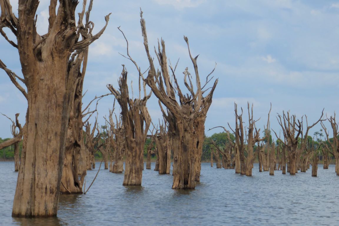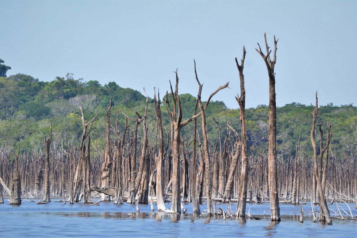 A construção de uma hidrelétrica envolve estudos de impacto ambiental, mas via de regra, são observados apenas os impactos da área que será alagada, acima da barragem, e não como a construção pode impactar o rio como um todo. O impacto rio abaixo, entretanto, foi visível e chamou a atenção da equipe de pesquisadores do Inpa, que constatou os enormes paliteiros no leito do rio, como são chamados as áreas onde troncos nus de árvores mortas formam verdadeiros cemitérios fluviais. “Os estudos prévios que são feitos antes de instalar uma hidrelétrica nem sequer contemplam essa parte a jusante da barragem e a maioria dos estudos científicos também só aponta os efeitos da hidrelétrica acima da barragem. Nós decidimos estudar os efeitos na parte abaixo da barragem porque era visível ao percorrer o rio a quantidade de árvore morta”, descreve Angélica. “Em toda essa parte a jusante, a gente não tem uma noção exata do tamanho do dano que a hidrelétrica causa. Estamos só começando a entender isso”.