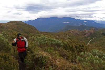 Subir, entretanto, vale a pena e permite uma visão panorâmica de toda região. Para todos os lados, reinam montanhas a perder de vista, entre elas algumas icônicas da região, como o Pico do Papagaio, no lado mineiro, e a Pedra Selada, no lado fluminense. Alcançamos o cume do segundo dia de travessia e, a partir de agora, nossa caminhada segue pela cumeeira em descida gradual que nos levará em direção ao nosso destino, a cidade de Maringá.