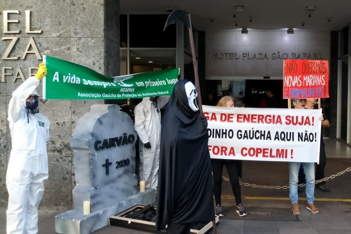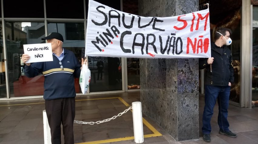 Um grupo de manifestantes realizaram na manhã desta terça-feira (14), em Porto Alegre, um protesto contra um projeto de instalação de uma mina a céu aberto às margens do rio Jacuí, entre os municípios de Eldorado do Sul e Charqueadas, na Região Metropolitana da capital gaúcha. Os manifestantes se reuniram na frente de um hotel onde estava sendo realizado um seminário promovido pela Sociedade de Engenharia do Rio Grande do Sul justamente para discutir a implantação do Polo Carboquímico no estado.